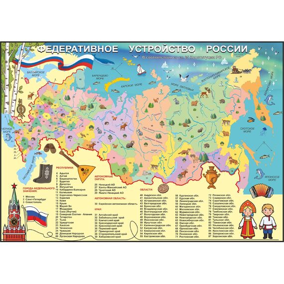 Карта из фетра «Национальности России» + 38 карточек