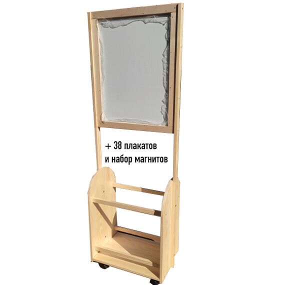 В комплекте: деревянная плакатница на колесиках с большой доской с меловым и магнитным покрытием. В комплект входит 19 плакатов на актуальные темы для дошкольников.